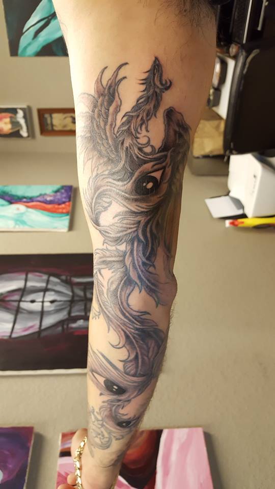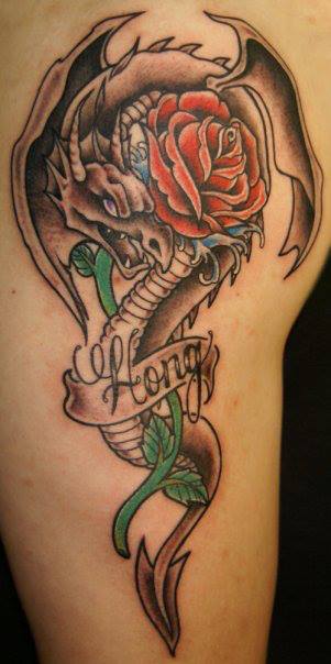 Watercolor D&D Dragons & Dice tattoo by Tim Baxley