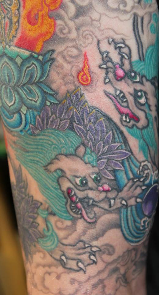 Tibetan 1/2 sleeve tattoo by Tim Baxley