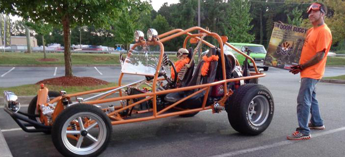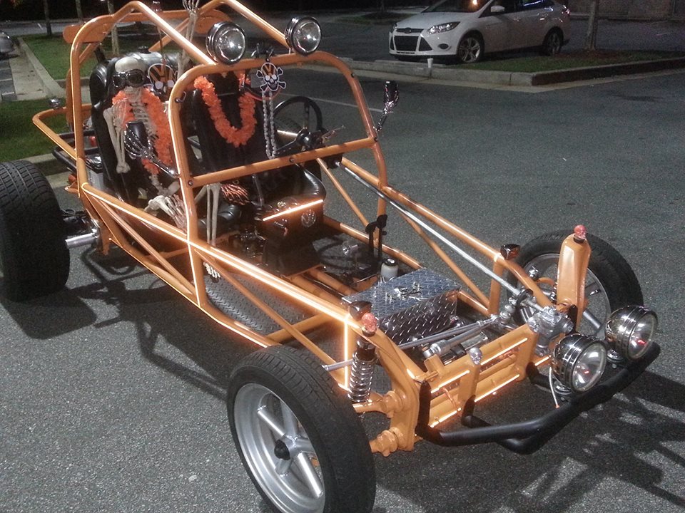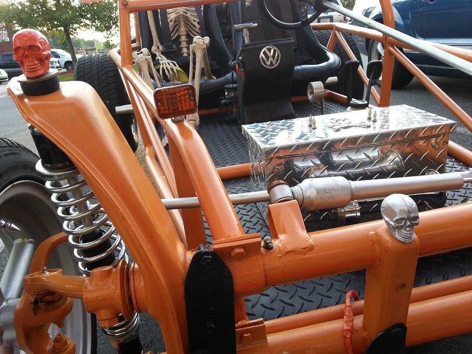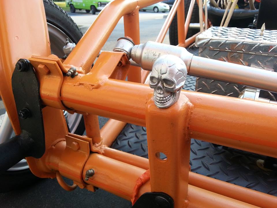 ☠ A hand built & hand painted award winning skull themed Rail Buggy with a 1974 VW Beetle 1600cc Engine, front end & a 70’s VW Bus rear end. A true collaboration. Built & painted by Popa Ray, Albin Cambell, Charlie Whitmire, Shawn Cash & Tim Baxley. Graphics by Tim Baxley. LIKE The DOOM BUGGY on FB! ☠